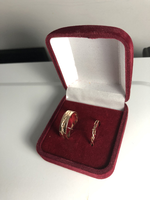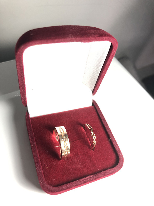 На внешней стороне мужского кольца выгравирован силуэт женского кольца тем самым показывая что вы одно целое.