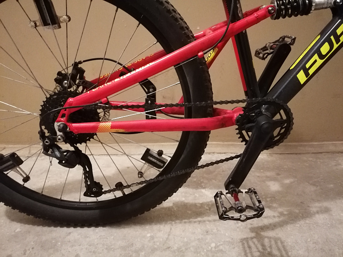 Велосипед откатал 1 год. Диаметр колес- 27,5 дюймов. Установлена новая передняя вилка, рулевая колонка, цепь. 9 скоростей, тормоза дисковые. Задний переключатель-Shimano Altus RD-M2000, манетка-Microshift TS38, рычажная, тормоза дисковые -Tektro MD-M280, 160/160 мм, передняя звезда-