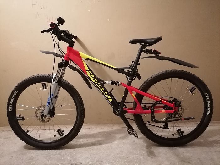 Prowheel Charm 32NW, покрышки-CST Patrol 27.5x2.25 (27TPI). Дополнительно-спидометр,педали WEST BIKING алюминий,система контроля давления в колесах TPMS, фонарь передний со звонком, задний фонарь.